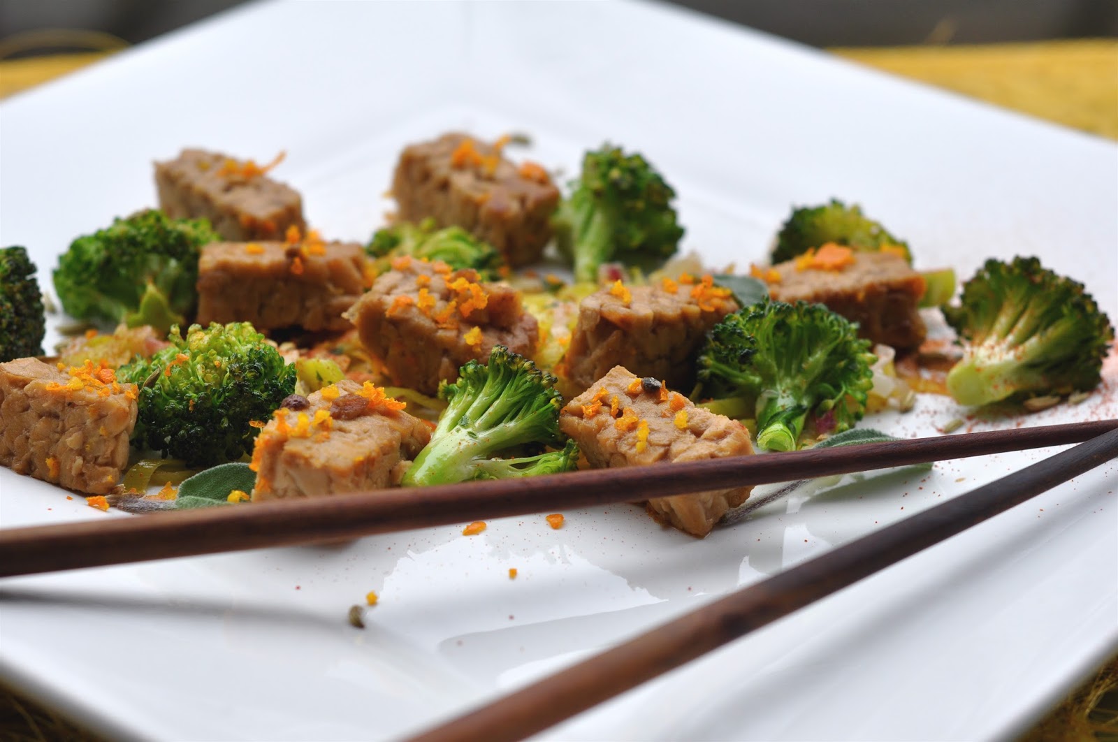 Come prima ricetta per provare a mettere in pratica questi concetti, ne ho scelta una di Christiane Seifert tratta dal libro: la cucina dei 5 elementi. La ricetta originale prevedeva il maiale, che io ho sostituito con il tempeh. Ho accompagnato con dei broccoletti conditi sempre cercando di seguire lo stesso ciclo.